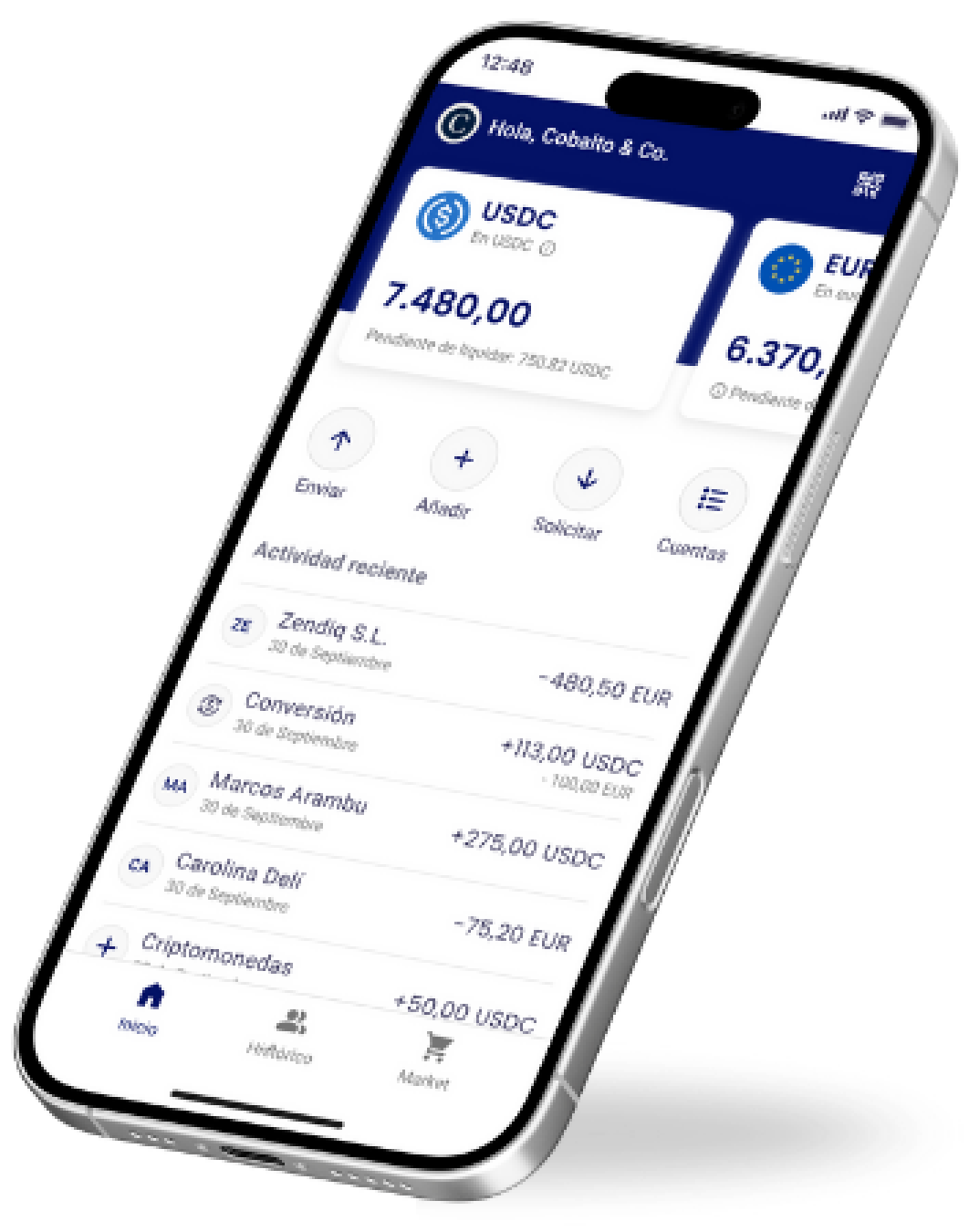 Envía dinero desde tu saldo en USDC y el destinatario recibirá euros directamente en su cuenta bancaria de la zona SEPA.
